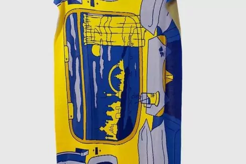 У мерч-шопі “Укрзалізниці” “Залізна крамниця” з’явився плед з вікном купе з краєвидом на Київ. Його виготовив український бренд Woolkrafts.