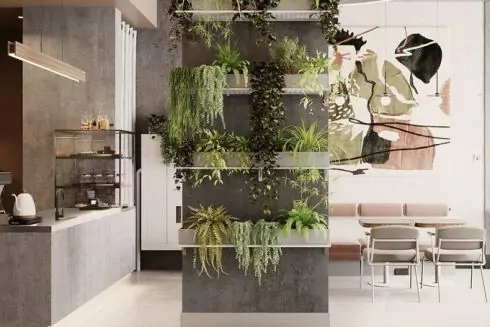 Інтерʼєр кав’ярні із декором у вигляді килимів створила студія дизайну Mira Architect.