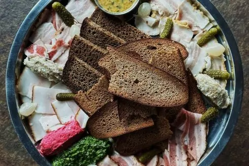Ціни: тюлькаброт з маринованими томатами та часником конфі – 275 гривень, вареники з картоплею, боровиками та шиїтаке – 225 гривень, український рамен – 185 гривень, червоний борщ з печеною качкою – 335 гривень, котлета по-київськи з сиром та халапеньо – 365 гривень.