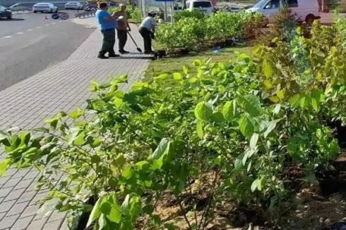 Також там постригли газон, встановили флагшток з прапором і ставлять огорожу.