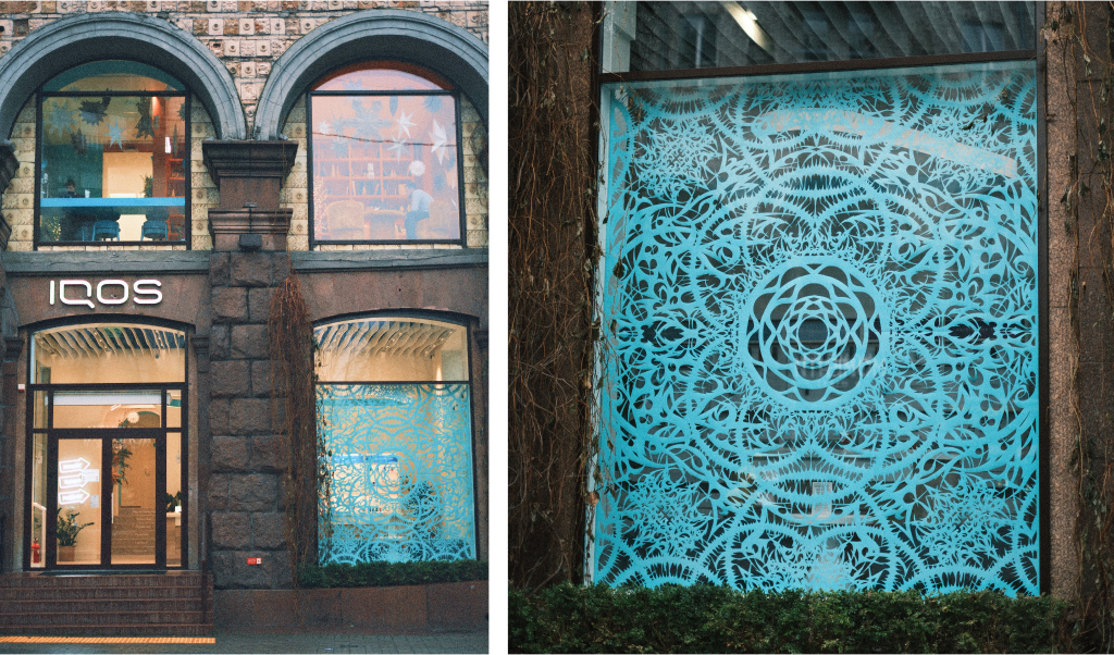 До новорічних свят вікна найбільшого IQOS Space країни прикрасили триметровими витинанками ручної роботи.