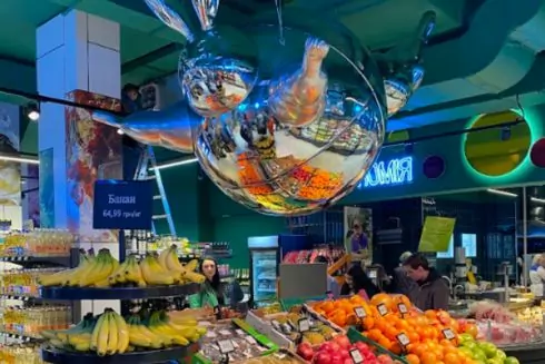 При вході гостей зустрічає артінсталяція у вигляді людини з дзеркальної мозаїки, серце якої пульсує світлом, нагадуючи про силу життєвої енергії. У глибині магазину — дзеркальний кролик, який ніби запрошує на прогулянку до "Країни див". А зона гастрономії прикрашена дзеркальними віконцями, які створюють ілюзію входу до паралельних світів.