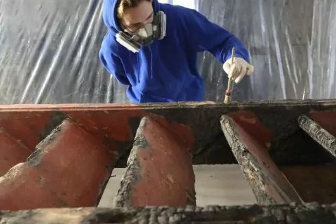 Внаслідок атаки на музей сходи вціліли на 70%. Перш ніж взятись до роботи, провели спеціальні дослідження, відібрали проби, щоб зрозуміти структуру об’єкта, рівень пошкоджень та правильно спланувати подальші дії з консервації і реставрації експозиційного елемента.