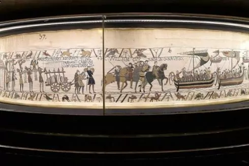 70-метровий гобелен детально зображує завоювання Англії норманами у 1066 році. Його сюжет починається з того, як Гарольд Годвінсон присягає на вірність Вільгельму, але зрештою сам стає королем, що призводить до кривавого протистояння.