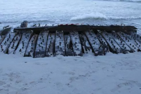 Його частини вперше виявили у лютому 2024 року після шторму. Місцеві фермери за допомогою тракторів і причепів вивезли з пляжу 12 тонн дубових балок. Дослідники-волонтери визначили, що дерева зрубали на півдні Англії у середині XVIII століття.