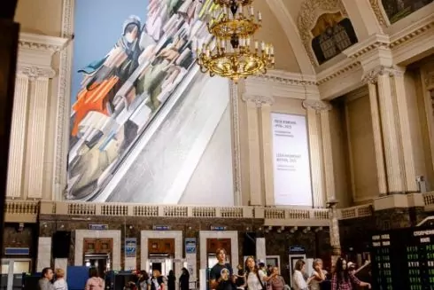 На Центральному вокзалі Києва PinchukArtCentre разом із "Укрзалізницею" представили монументальне полотно художниці Лесі Хоменко "Рух".