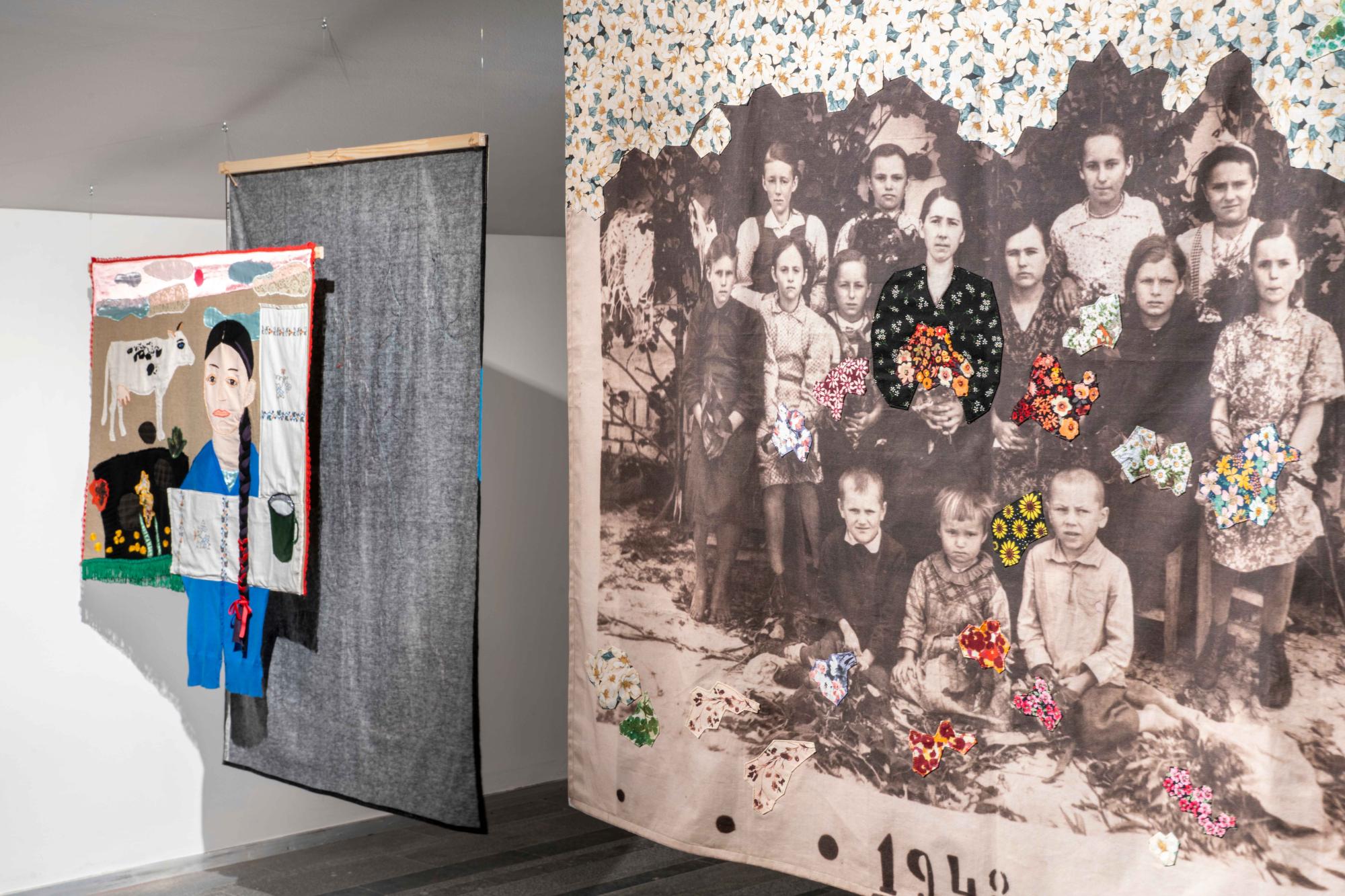 Робота Оксани Брюховецької — це перенесені на тканину фотографії її бабусі Галини. Брюховецька зізнається, що біографія навіть найближчої людини може бути сповнена білими плямами: художниця майже не знає про життя бабусі під час Другої світової війни. Перенесення випадково знайдених у фотоальбомі знімків Галини — акт гіперкомпенсації та данина пошани бабусі, яка навчила її шити. Інші “острови” складають роботи Миколи Рідного, Юрія Білея, Яреми Малащука, Романа Хімея та інших.