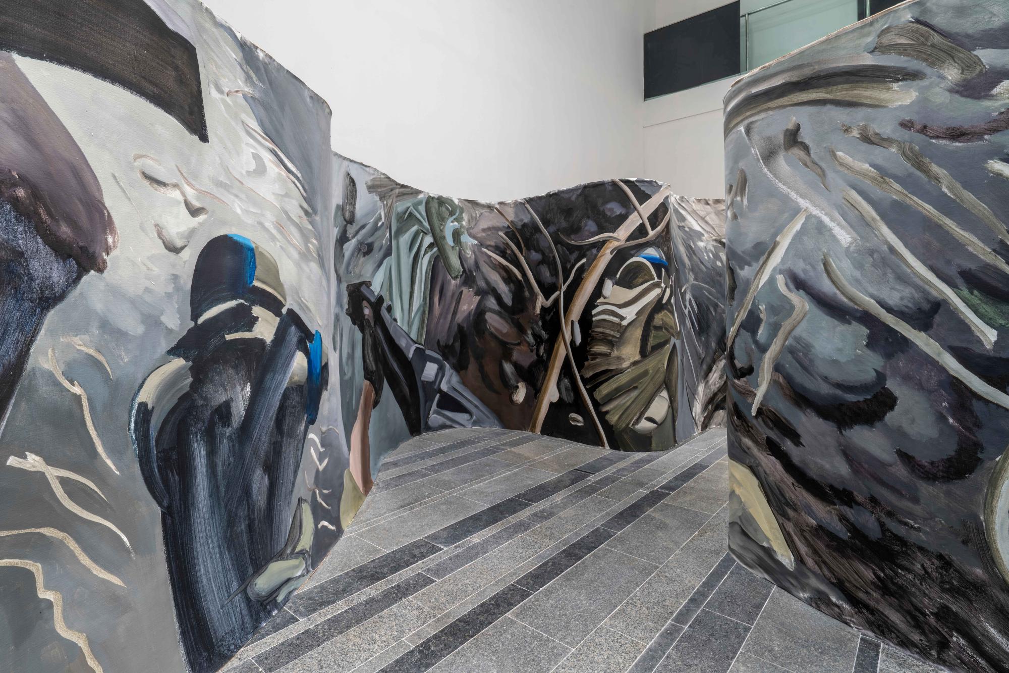 Наприкінці виставкового проєкту живопис перетворюється на середовище, в яке відвідувач може зануритися. Робота “Бій в окопі” — це побудована траншея, що виросла посередині виставкового залу. Художниця відтворила архітектуру траншей, посилаючись на кадри з відеозаписів боїв 3-ї штурмової бригади. Хоменко розділила кадр із відео бійця бригади, наклавши перемальовану половину кадру на праву стіну, а іншу — на ліву. Кожна з цих стін траншеї важить по 250 кілограмів, тож сама художниця називає конструкцію “гіперболізованою картиною”.