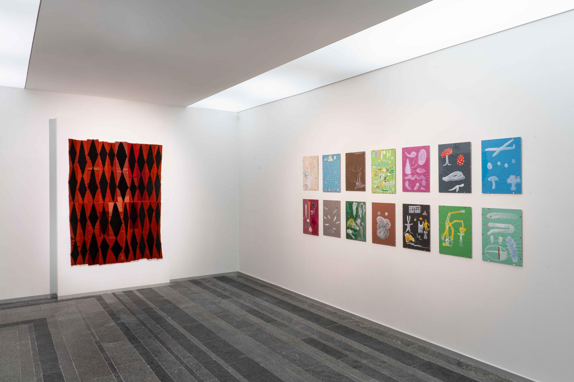 Ксенія Білик теж створила свою роботу на початку великої війни, коли заради заспокоєння в’язала ромби. Згодом вона об’єднала їх в єдиний виріб — роботу “40 ромбів”. Так сам процес плетіння і послідовного з’єднання фрагментів перетворився на ритуал — пошук стабільності й ритму там, де світ залишається непередбачуваним.