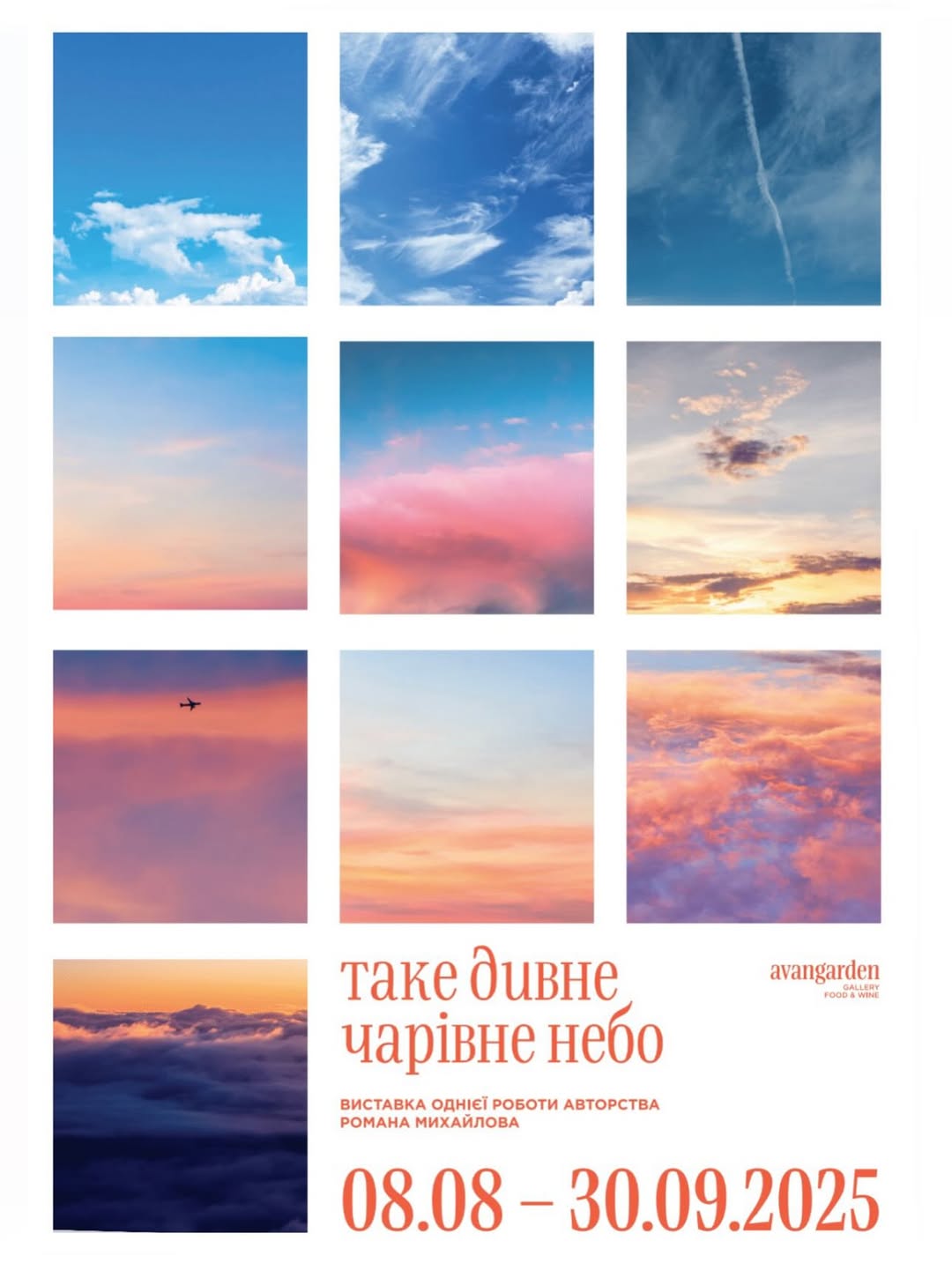 “Таке дивне чарівне небо” — це виставка однієї роботи. Художник Роман Михайлов створив велике полотно 3х4 метри, на якому зображене українське небо. Конфлікт — у самих кольорах, у динаміці змін, які розгортаються над головою. Рожево-перламутровий поступово відходить у синеву, допоки та не темніє і не віддається сутінкам — часу, коли кожен українець очікує на черговий вибух.