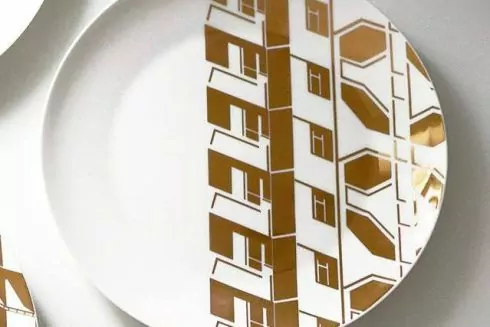 Проект Серія включає порцелянові тарілки з золотим нанесенням (8% натуральне золото), листівки та плакати.