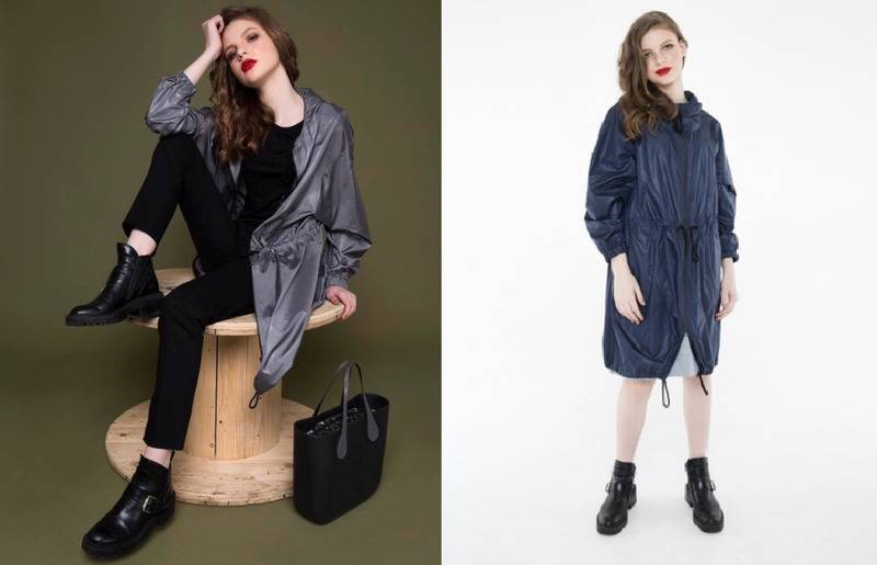 Бренд робить весняно-літні плащі-дощовики у 4 кольорах – Avocado, Watermelon, Sky і Cherry. Вони виконані з мембранної водостійкої тканини, що дихає, з легкою підкладкою. Шви герметизовані, фурнітуру закуповують у європейських виробників.