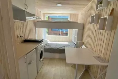 Це ініціатива благодійного фонду «Хатинка». У місті вже встановили перше експериментальне помешкання.У модульному будинку площею 14 квадратних метрів можуть проживати до чотирьох осіб. Помешкання оснащене освітленням, власними кухнею та санвузлом, є пральна машинка, кондиціонер, бойлер та місця для зберігання речей.