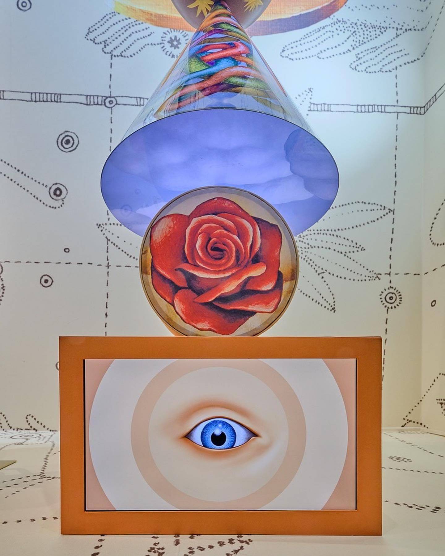 Вітрини доповнені об'ємними арт-об'єктами та механізованими елементами у форматі екранів із миготливим оком, що також перегукується з творчістю автора. До проєкту також запросили аудіодизайнера, який створив для вітрин музичний супровід, заснований на сприйнятті картин художника.