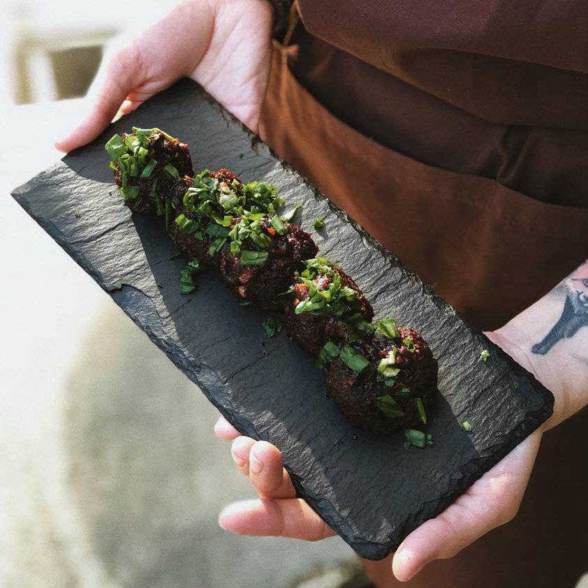 Ціни: сатай з курячими серцями – 37 грн, сатай з маринованим тофу – 47 грн, салат з битими огірками та смаженою броколі – 69 грн, рамен зі свинячими ребрами – 120 грн Адреса: вул. Воздвиженська, 51