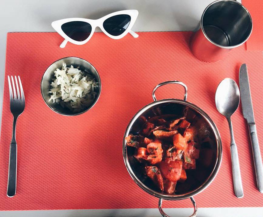 Меню вийшло лаконічне, але змістовне. З основних страв – смажена курка (з часниково-імбирною пастою, йогуртом і спеціями або з горіховим соусом, вершковим маслом, кінзою та імбиром) і панір (у червоному соусі з рисом або овочами, імбиром і рисом). Крім цього, є кілька видів рису, самос з овочами та куркою, томатно-вершковий суп, випічка та солодощі.