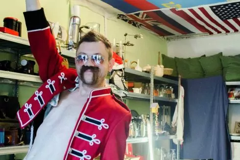 Паралельно він показує колекцію речей, від яких вирішив позбутися і які тепер можна знайти на полицях його магазину: