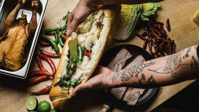 Основа меню — це в'єтнамський сендвіч Banh Mi з куркою, свининою чи вегетаріанський. Він є двох розмірів: baby і стандартний. До нього подають чотири концептуально різних соуси і пропонують велику кількість добавок, якими можна доповнити будь-який варіант.