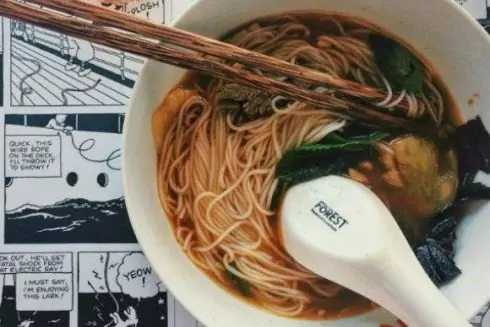 Меню заведения — это комикс от иллюстратора Граси Олийко о гастрономических приключениях мультяшного персонажа Тинтина во Вьетнаме (героя комиксов бельгийского художника Эрже, который выходил с 1929 до конца 1980-х годов и переведен на десятки языков).
