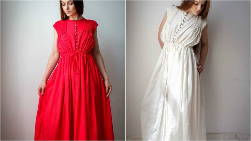 В ассортименте - вышитые сорочки, короткие и длинные платья ярких цветов и белым по белому.