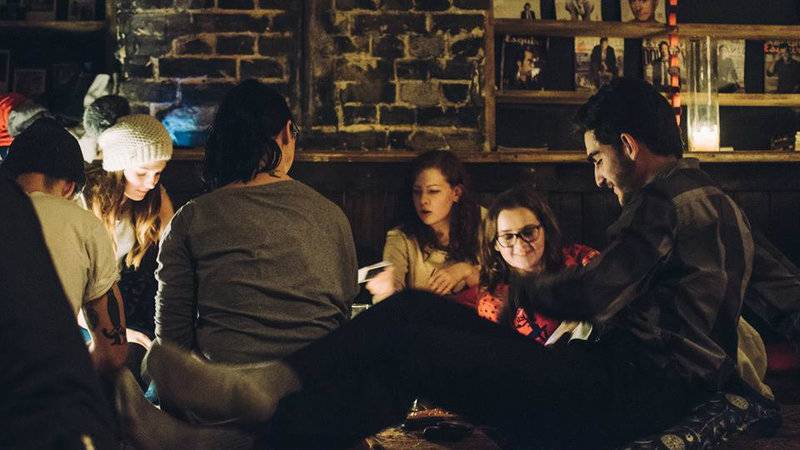 Классические коктейли, библиотека, кинопоказы классики мирового кино и дружеская атмосфера способствовали тому, что в баре и даже возле него всегда было негде яблоку упасть.