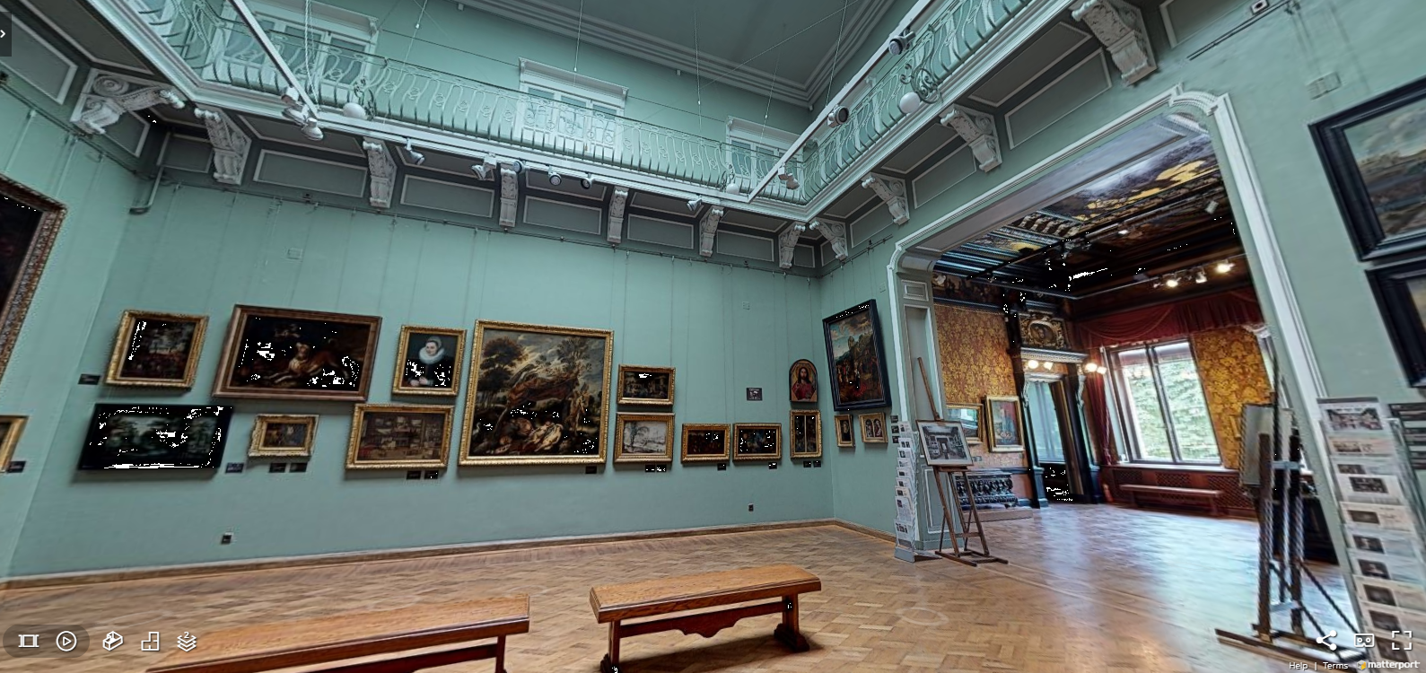 У 3D-турі поки можна подивитися кілька залів, решта ще не оцифровані. У налаштуваннях можна обрати як самостійну прогулянку, так і записану музеєм.