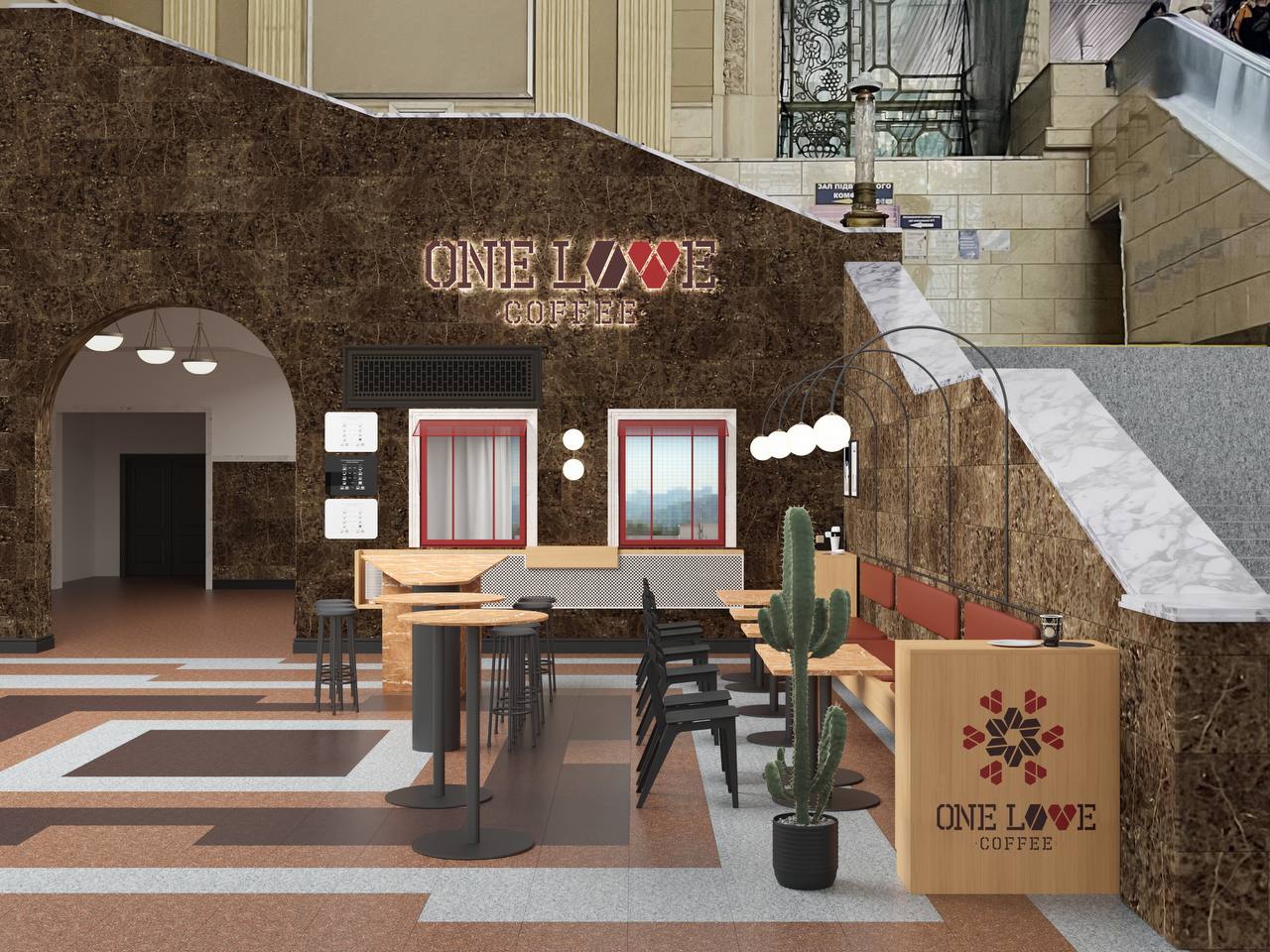 На території Центрального залізничного вокзалу, поряд із "Залізною крамницею" та ялинкою, розпочала роботу кав’ярня ONE LOVE від команди Володимира Задираки.