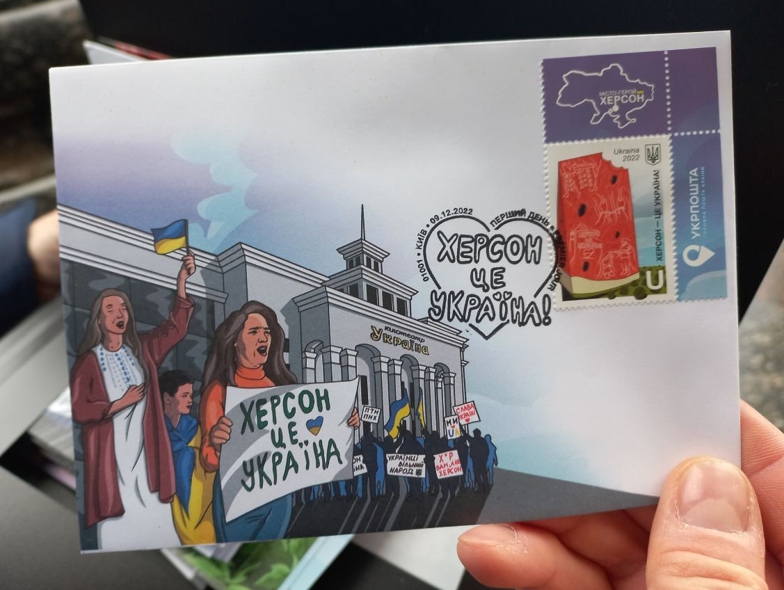 На Майдані біля Головпоштамту сотні людей вишикувались в черги за новою маркою «Херсон — це Україна», яка присвячена звільненню міста від окупації росією.