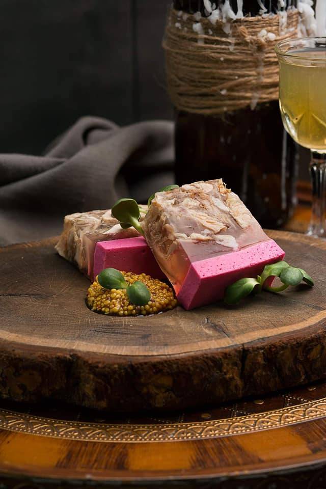 У меню – їстівні свічки, борщ із чорносливом і в'яленою грушею, чорні вареники з судаком, паштет з печінки фазана, холодець з кролика з молекулярним хроном, голубці з козячим м'ясом, зелений борщ з кропивою і цесаркою, язик теляти з баношем і ще кілька десятків страв. Також пропонують дегустаційні сети і сніданки.