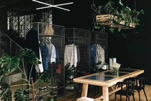Это же пространство одновременно является шоурумом украинского бренда женской одежды Nuances. Марка выпускает практичные и простые платья, юбки, рубашки - в общем, базовую и совершенно необходимую одежду.