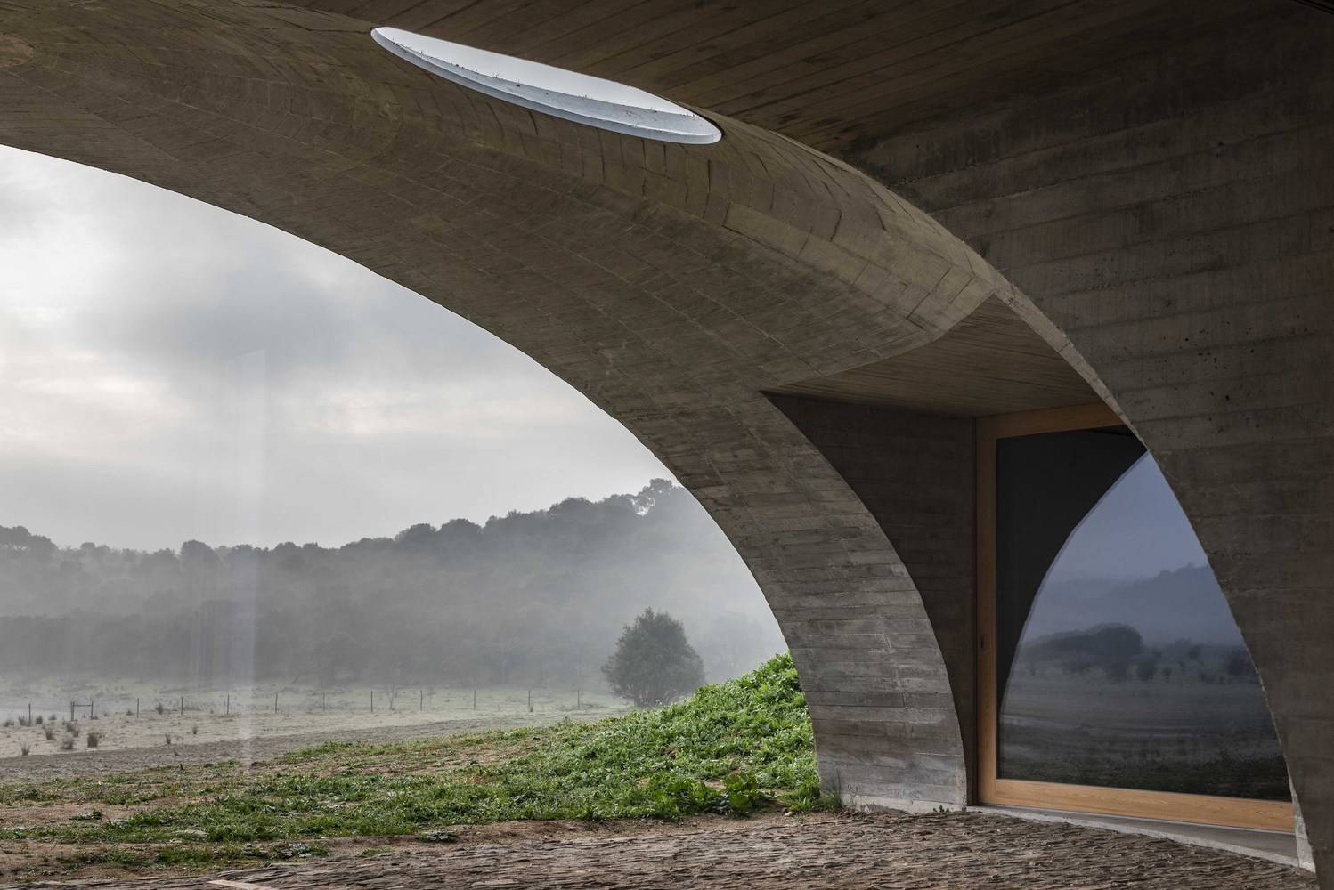 House in Monsaraz — житловий будинок біля озера Алкева. Зверху можна побачити тільки вхід під землю і три білих куполи з отворами, які висвітлюють простір.