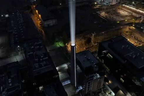 Арт-об'єкт відкрили у жовтні минулого року. Це 60-метрова труба на території старого мотоциклетного заводу. З труби в небо спрямований промінь світла. Об'єкт оточений міні-планетарієм з чотирма проєкторами, а всередині розташований «Кінотеатр 360», який утворює ефект 3D-простору.