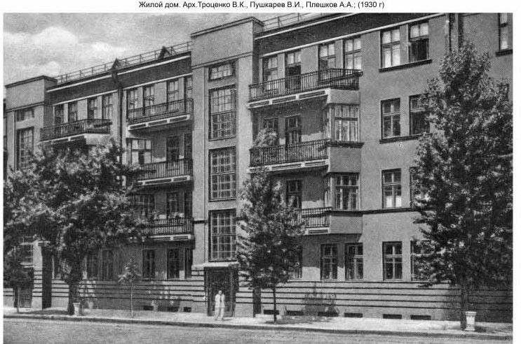 “Віктор Троценко більш відомий як автор проєктів робітничих котеджів на пр. Героїв Харкова, що мали риси українського модерну, але в цілому його можна назвати одним із «батьків» харківського конструктивізму”, – зазначає Пономаренко.