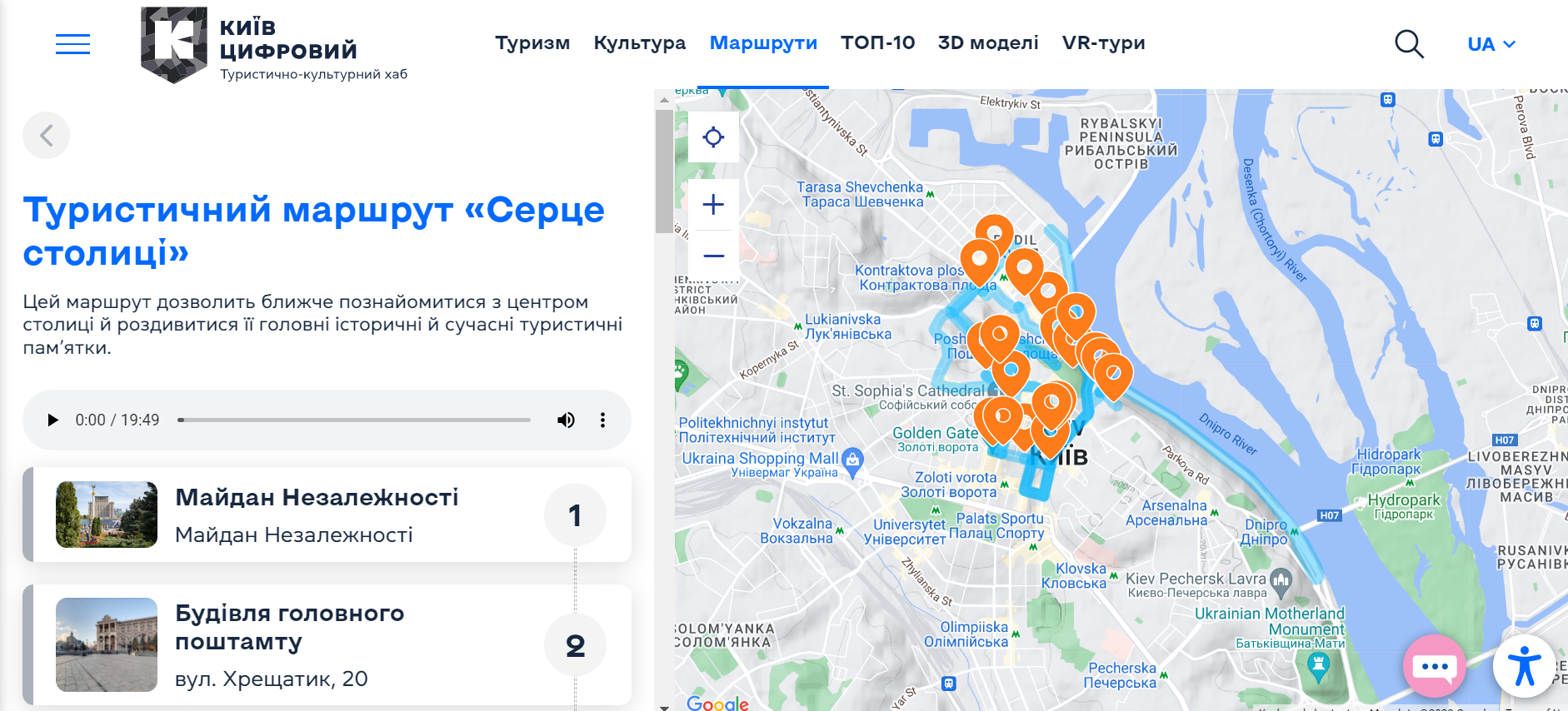 Туристично-культурний хаб «Київ-Цифровий» наразі пропонує мандрівникам аудіогіди з 16-ти маршрутів.