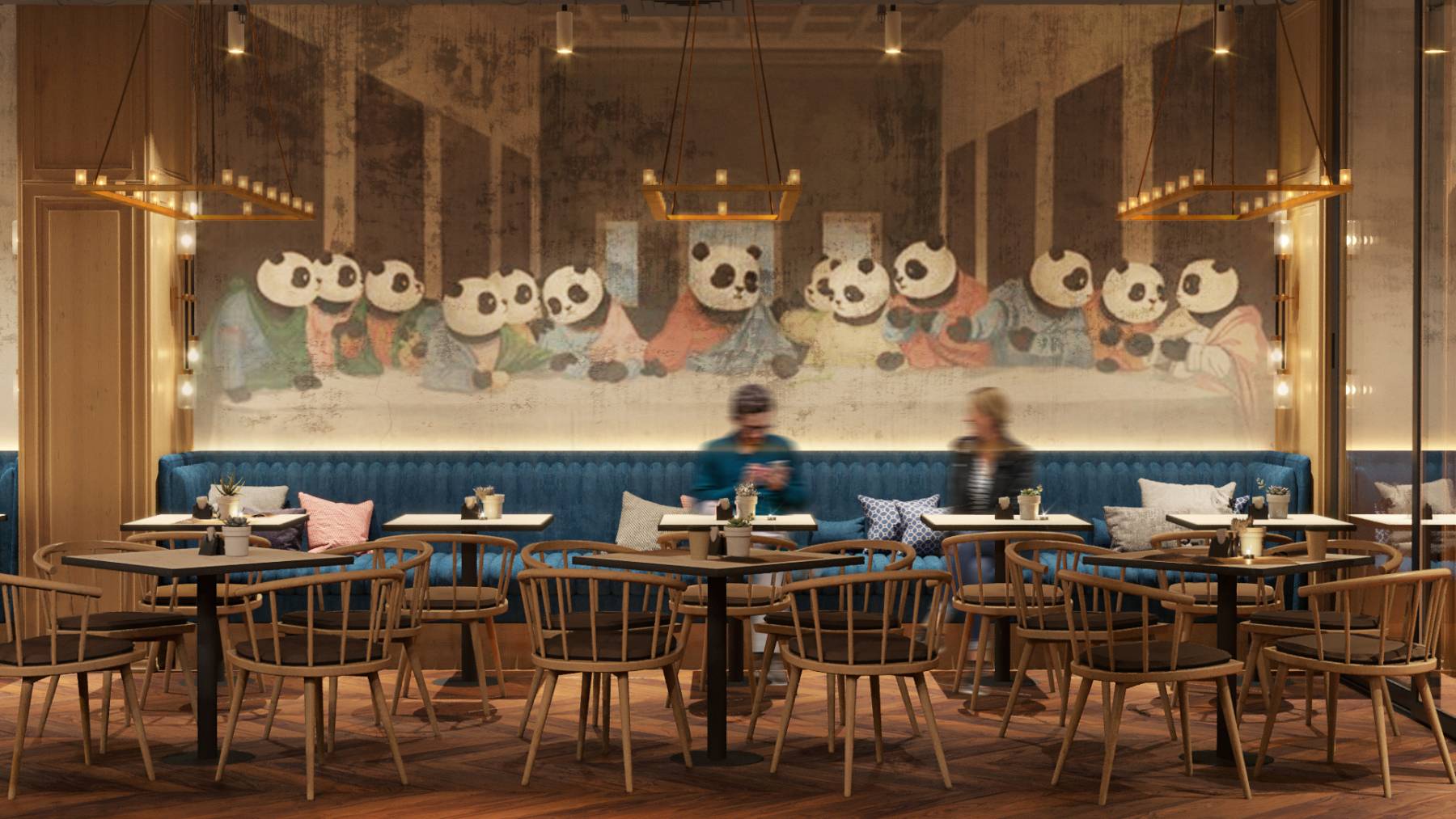Крім того, у авторів Big Hug виникла ідея додати живопису в інтер'єр ресторану та зобразити всесвітньо відомі твори мистецтва. На стінах закладу будуть репродукції епохальних художників, серед яких: «Народження Венери» Боттічеллі, «Таємна вечеря» Леонардо да Вінчі. При цьому, ролі героїв картин дістануться пандам.