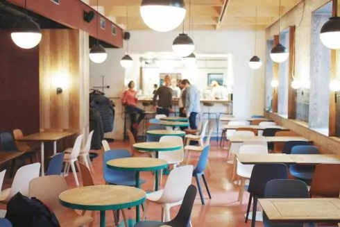 У ресторані працюють чотири зали: три обідні та зал для заходів, де будуть проходити безкоштовні лекції, музичні виступи, мультидисциплінарні події.