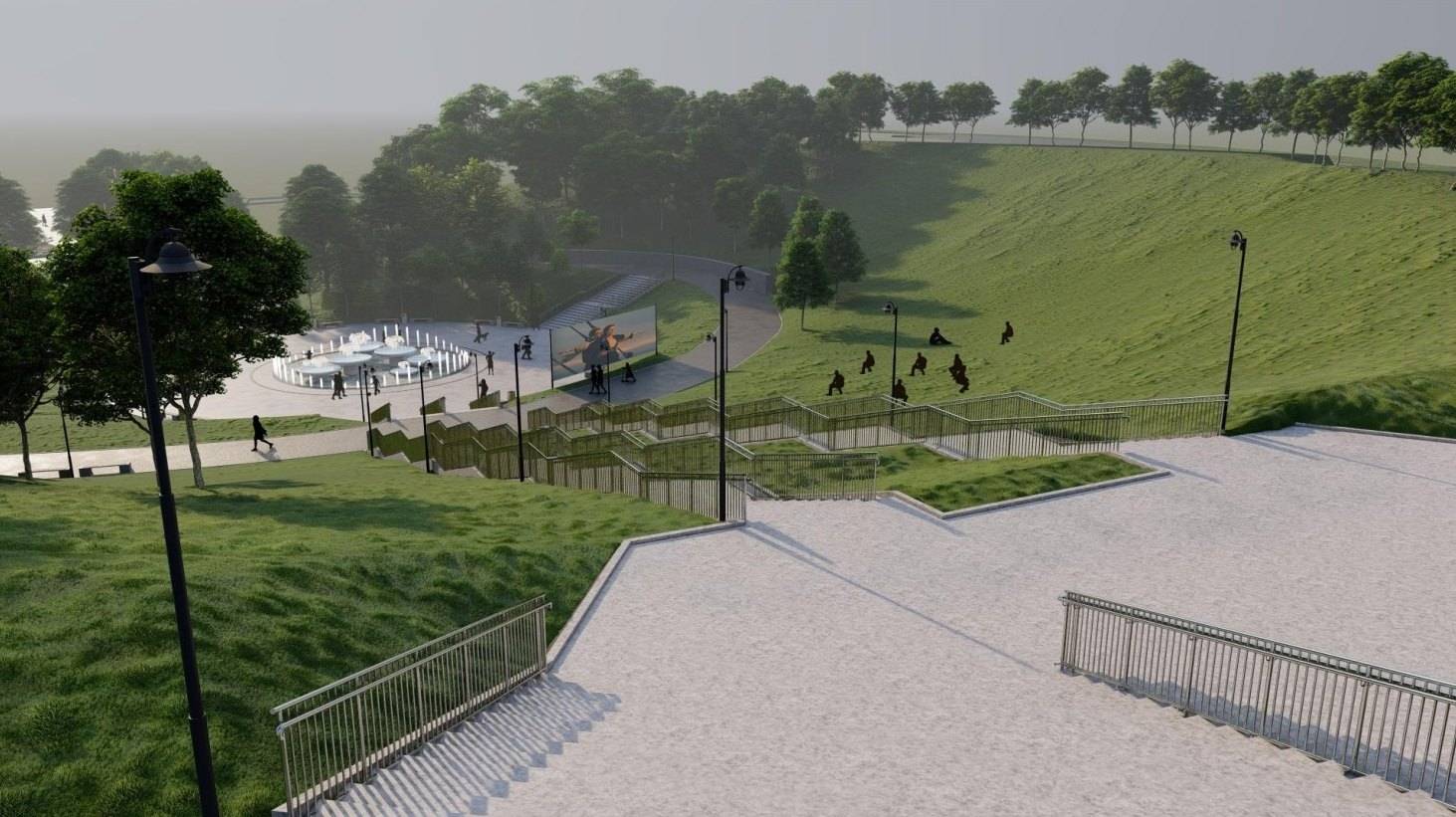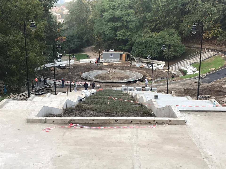 У Солом'янському районі триває реконструкція ландшафтного парку. Зокрема вже заклали фундамент для майбутнього фонтану.