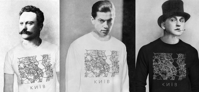 Речі виготовляються в чорному і білому кольорі. На футболках і світшотах надрукована схема міста.