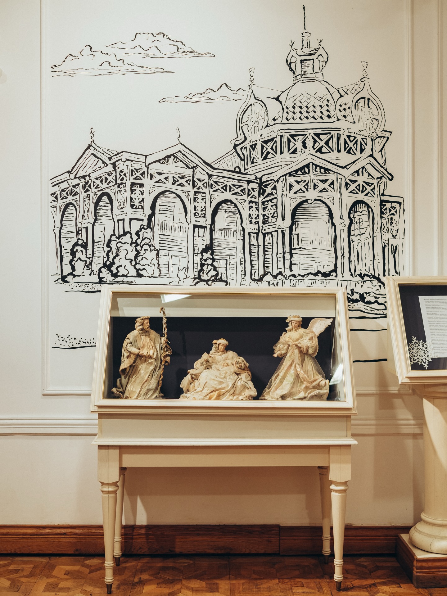 Виставка «Різдвяний Київ» показує понад столітню історію міських різдвяних прикрас. У ній об’єднали предмети з приватних київських і європейських колекцій: металеві підсвічники, літографовані янголи, богемський та німецький стеклярус, дрезденські картонажні фігурки, порцелянові мініатюри, воскові образи й ранні ватяні іграшки.