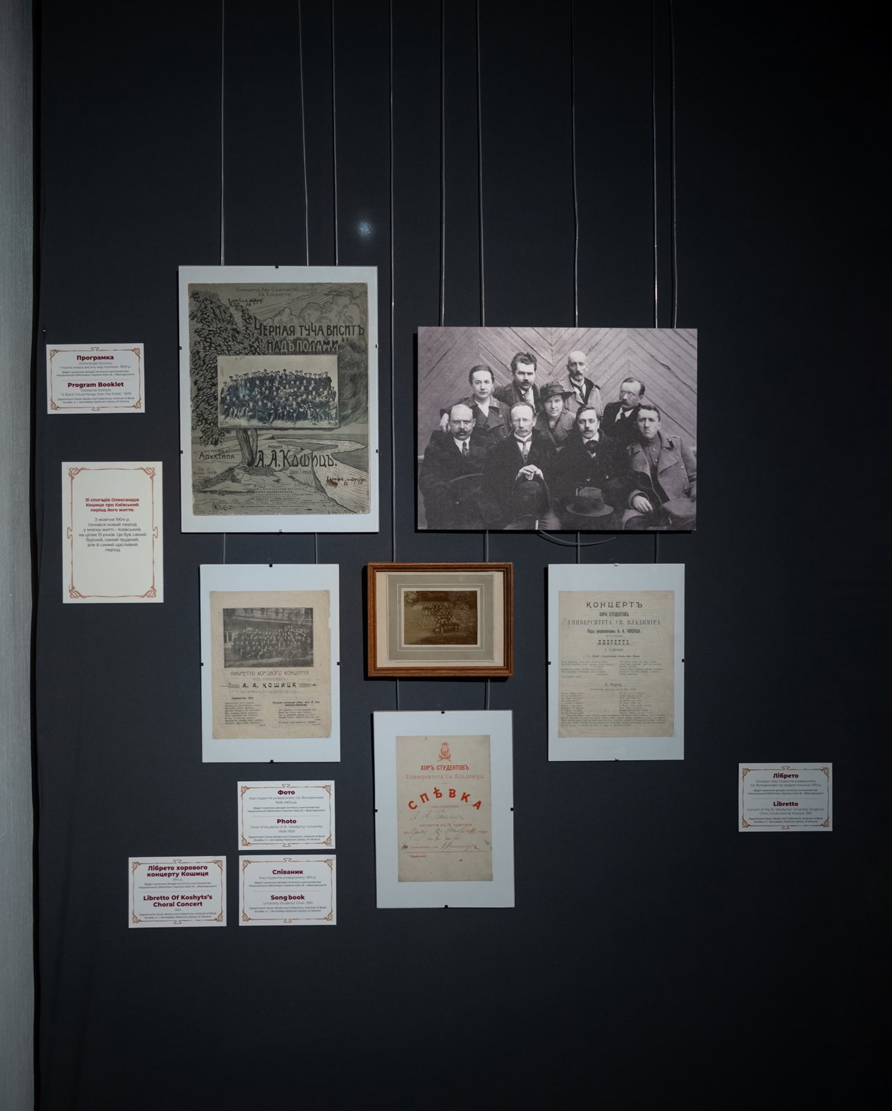 В експозиції можна побачити матеріали про композитора Миколу Леонтовича та диригента Олександра Кошиця — людей, завдяки яким у 1922 році «Щедрик» уперше пролунав у Carnegie Hall, заявивши про Україну світові. Проєкт також приурочили до 150-річчя з дня народження Кошиця.