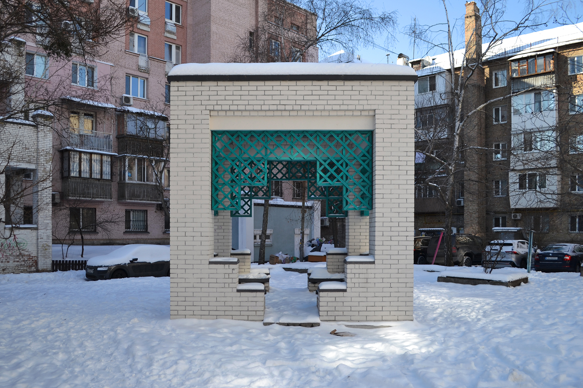 Саме цей квартал із бойлерною 1989 року представили на двох міжнародних архітектурних бієнале — у Софії та Кракові. Проте, за словами Юрія Шалацького, вже в перший рік після встановлення дерев’яні конструкції майданчиків спалили мешканці сусіднього гуртожитку. Архітектор припускав, що через заздрість.