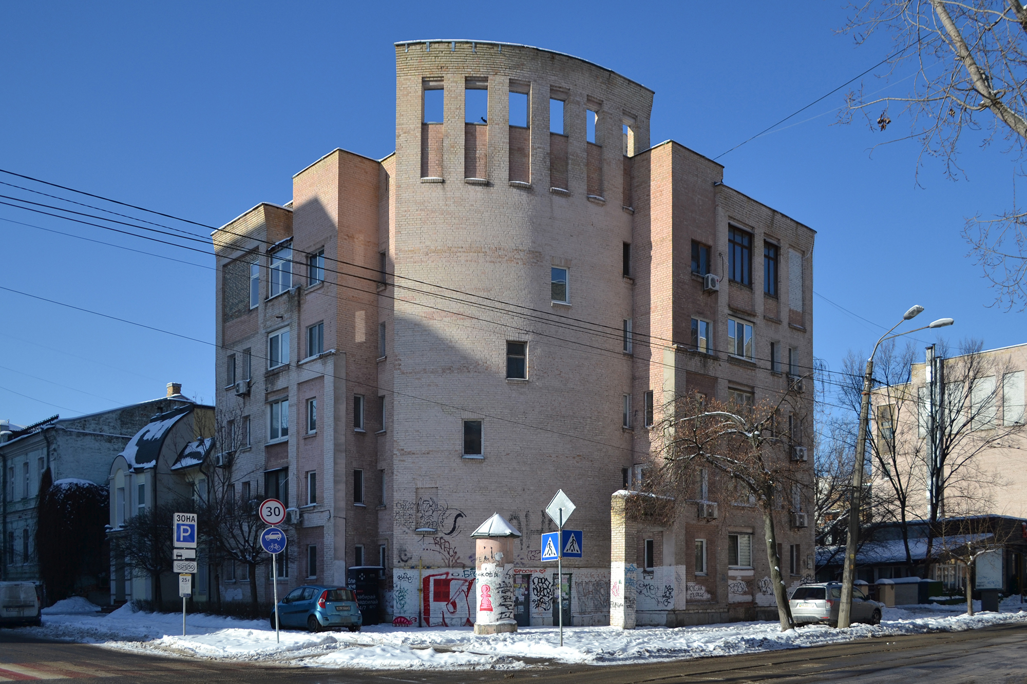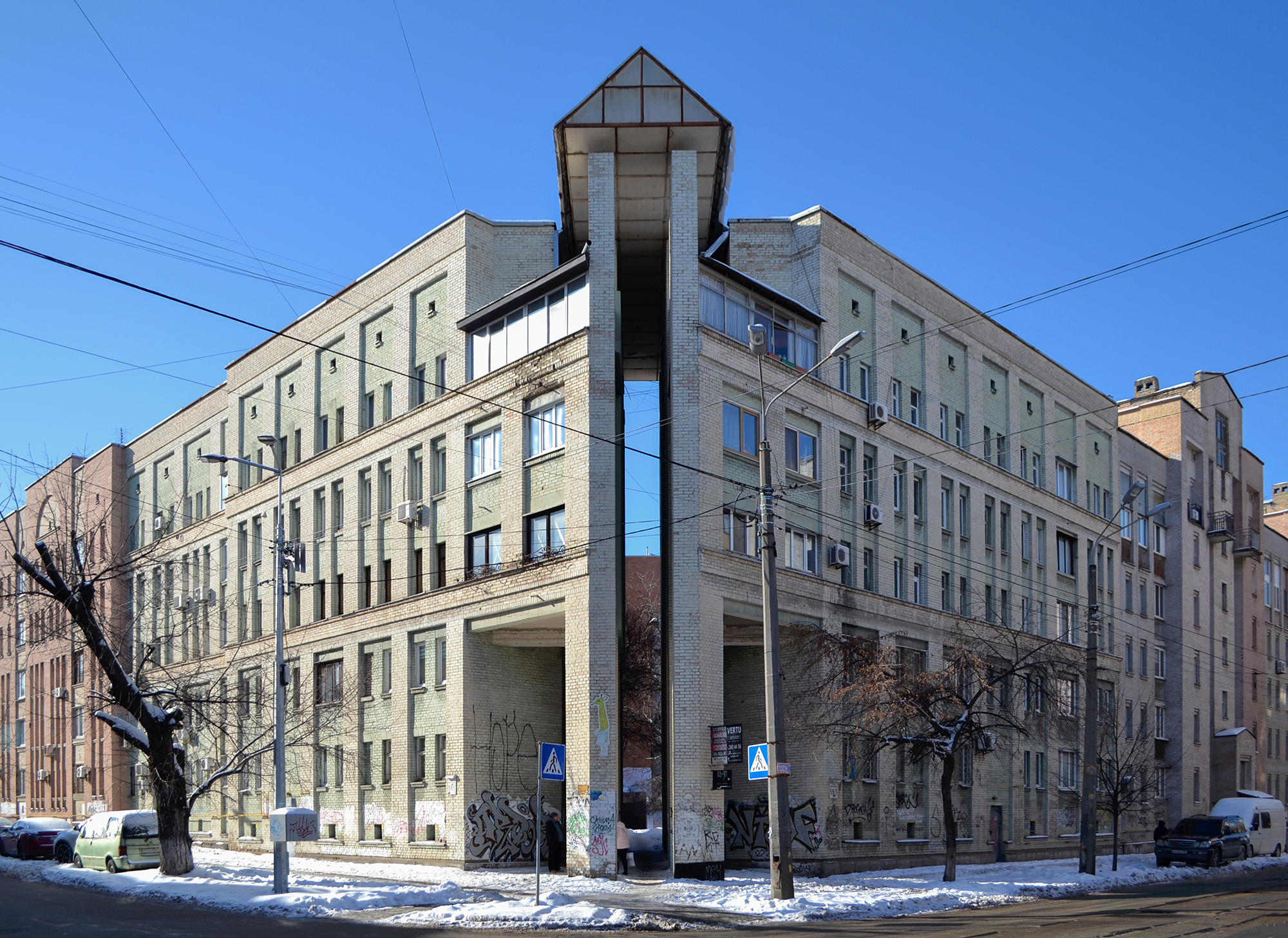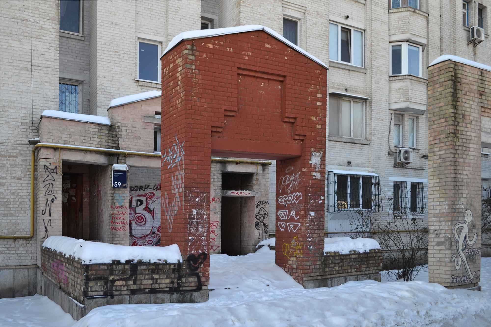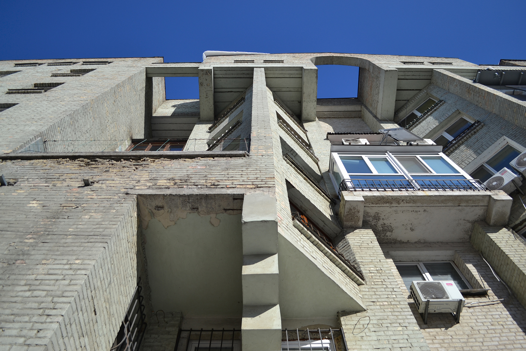 Проте сьогодні його руйнують самі жителі. Попри товщину стін у 64 сантиметри фасади часто зашивають кольоровим утепленням. Технічні поверхи й простори біля ліфтів самовільно приєднують до квартир. Підприємці перефарбовують або обшивають фасади закладів, додають химерні вхідні конструкції. Усе це поступово розмиває цілісність ансамблю й підсилює відчуття хаосу.