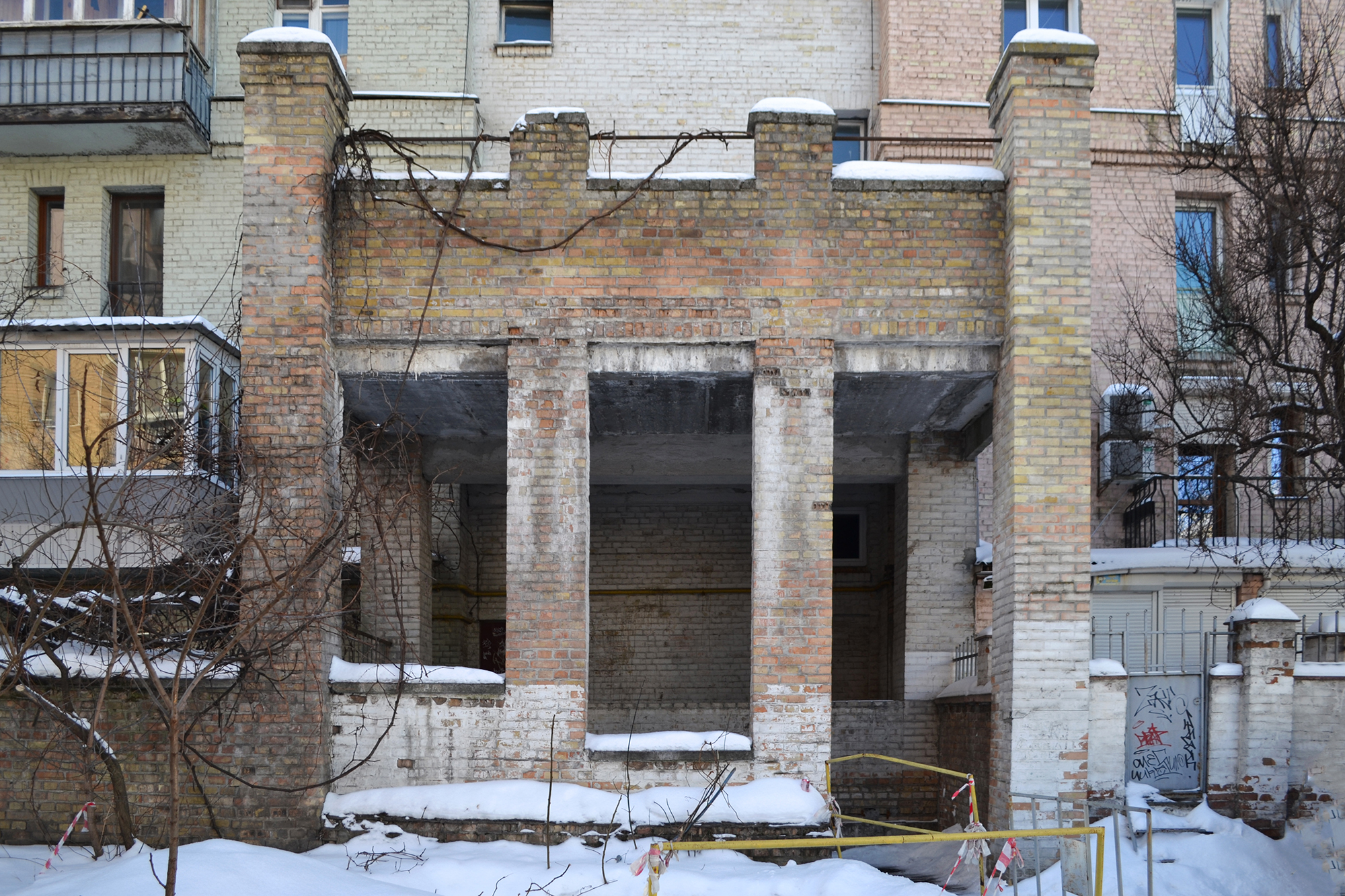 Його почали були зводити, але на ділянці виявили фундаменти невідомого храму та поховання XI століття. Тому роботи зупинили. Знахідки визнали пам’яткою національного значення, однак ані подальших археологічних досліджень, ані музеєфікації не відбулося. Територія поступово перетворилася на занедбану.