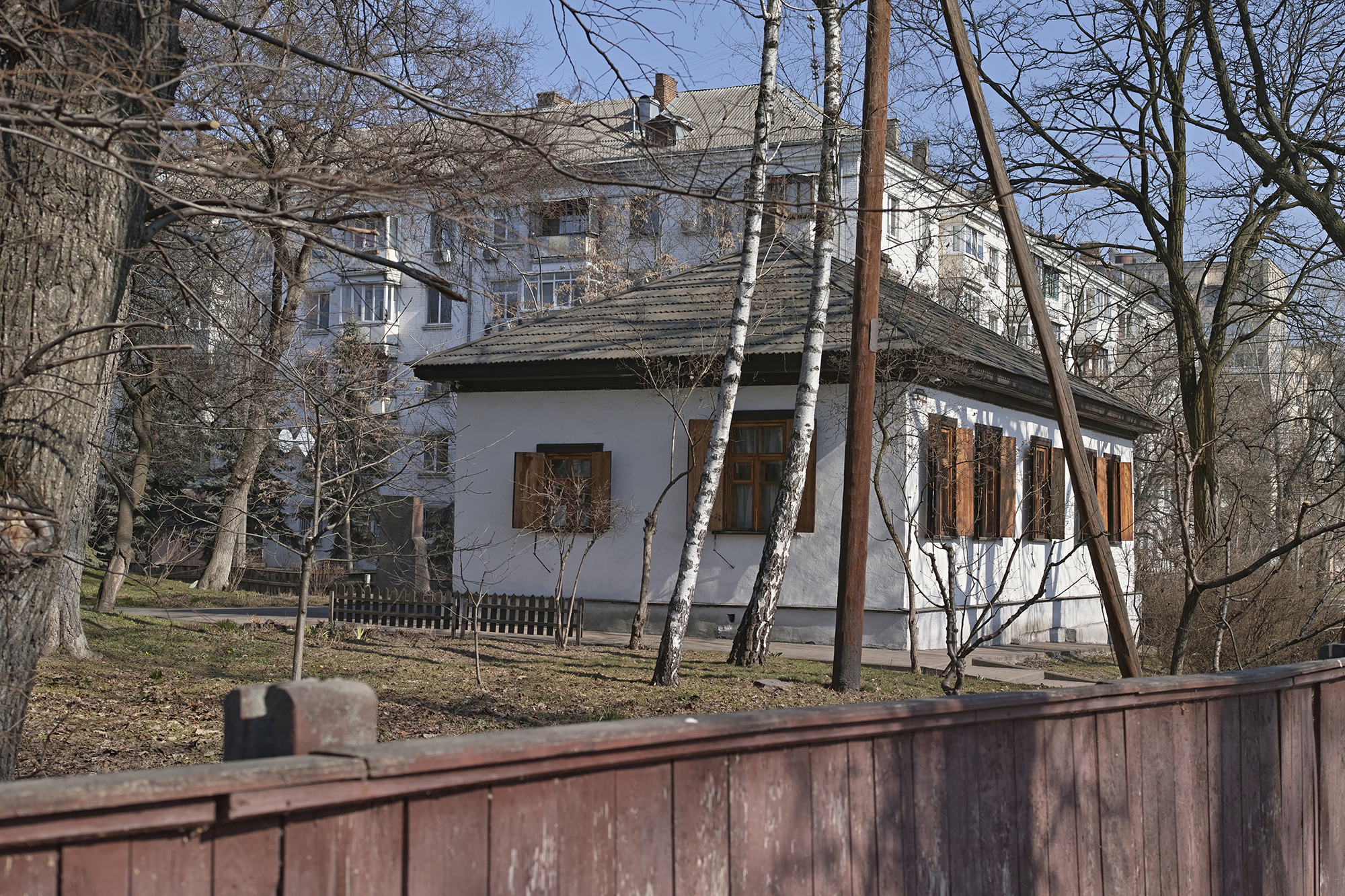 У 1949 році Художній фонд УРСР придбав садибу неподалік парку «Кинь-Ґрусть» і створив у ній Будинок творчості художників. Він працював до 1962 року, поки функції Будинку не перенесли до містечка Седнів на Чернігівщині. Садибу передали Академії мистецтв СРСР під творчі майстерні, а колишню вулицю Батайську, де вона розташована, перейменували на честь Івана Сошенка, українського художника та соратника Тараса Шевченка.