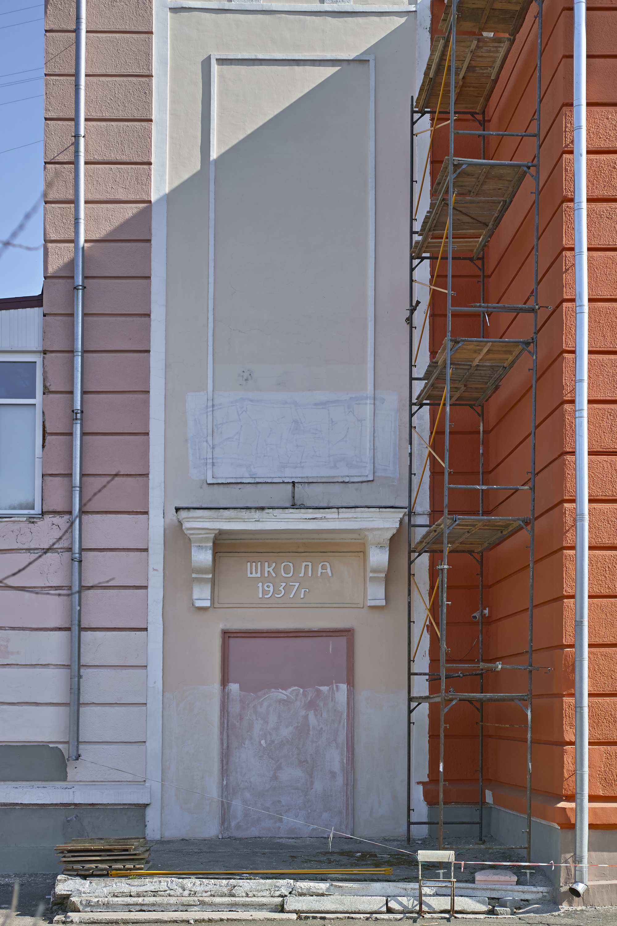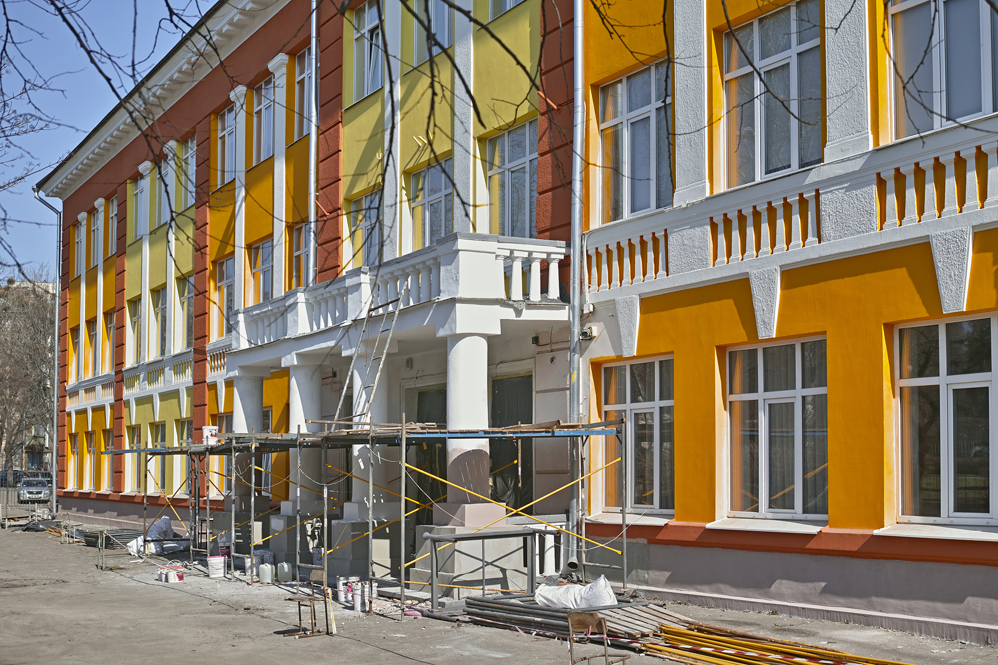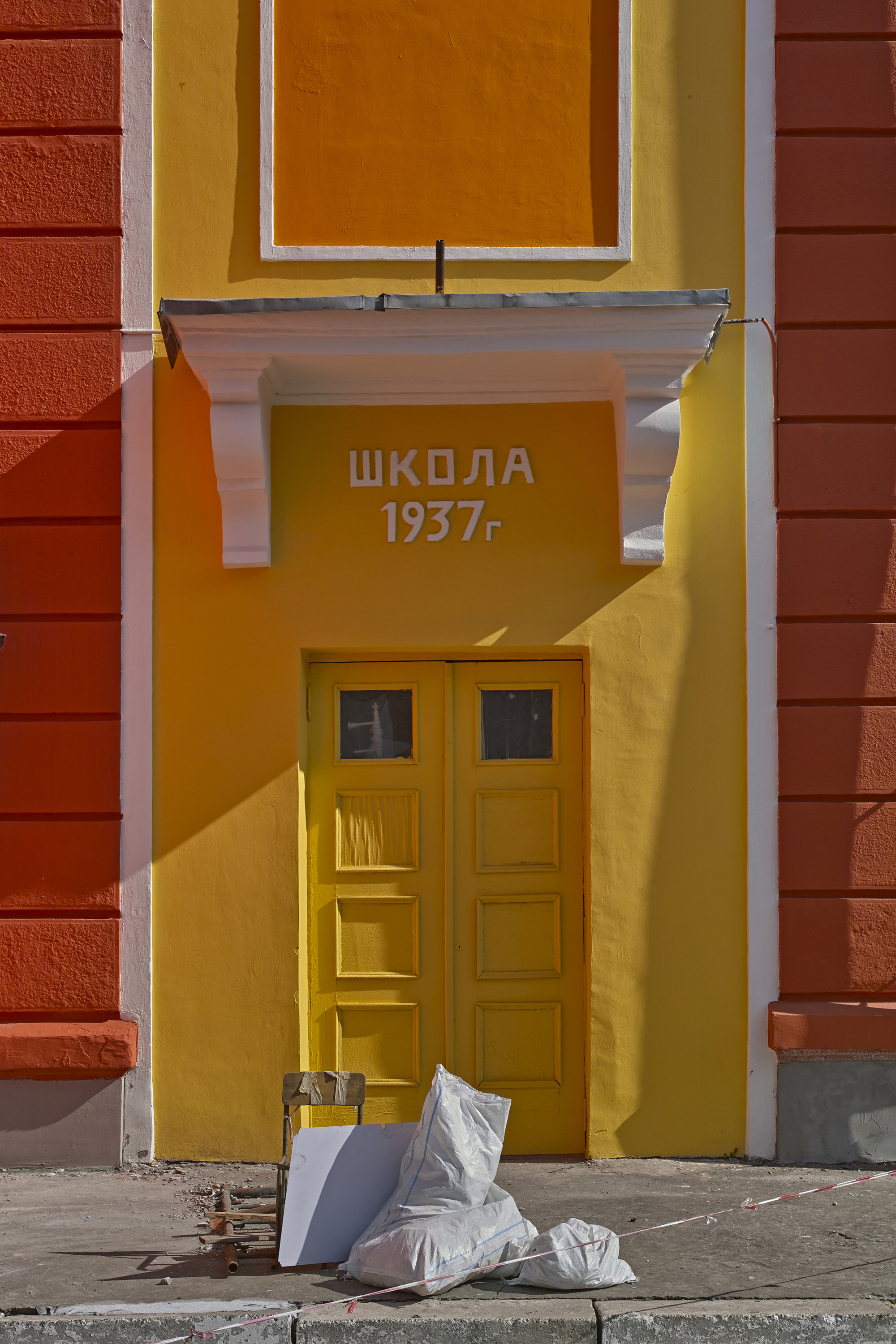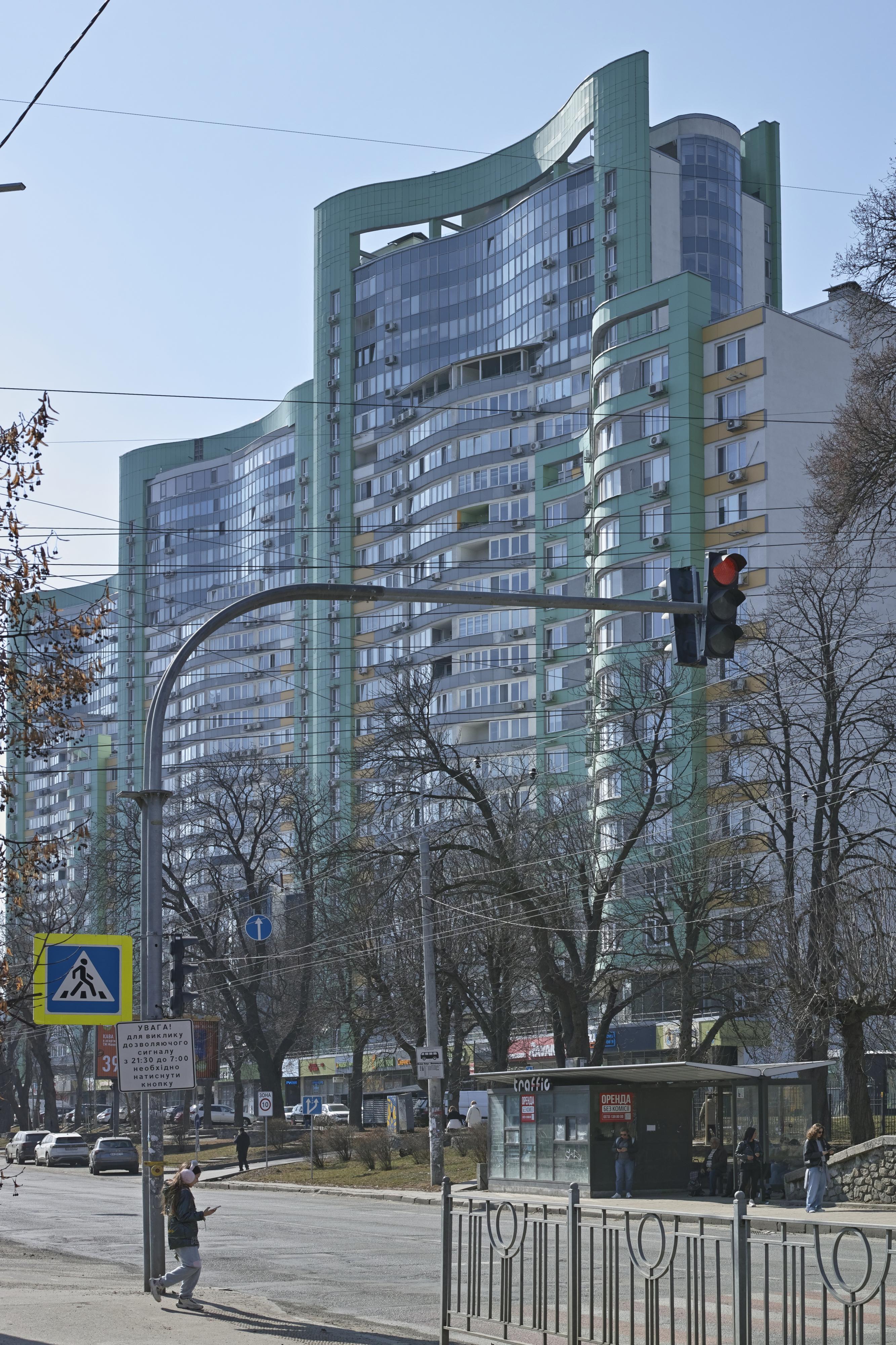 Південніше будинку-«Титаніка» розташована школа № 8, зведена у 1937 році за проєктом Емануїла Коднера. Протягом попередніх десятиліть фасад школи фарбували у пастельні відтінки, які гармоніювали з довкіллям. Але зараз її перефарбовують у страшенні червоні й помаранчеві кольори. Фасад при цьому навіть не утеплюють — просто фарбують.