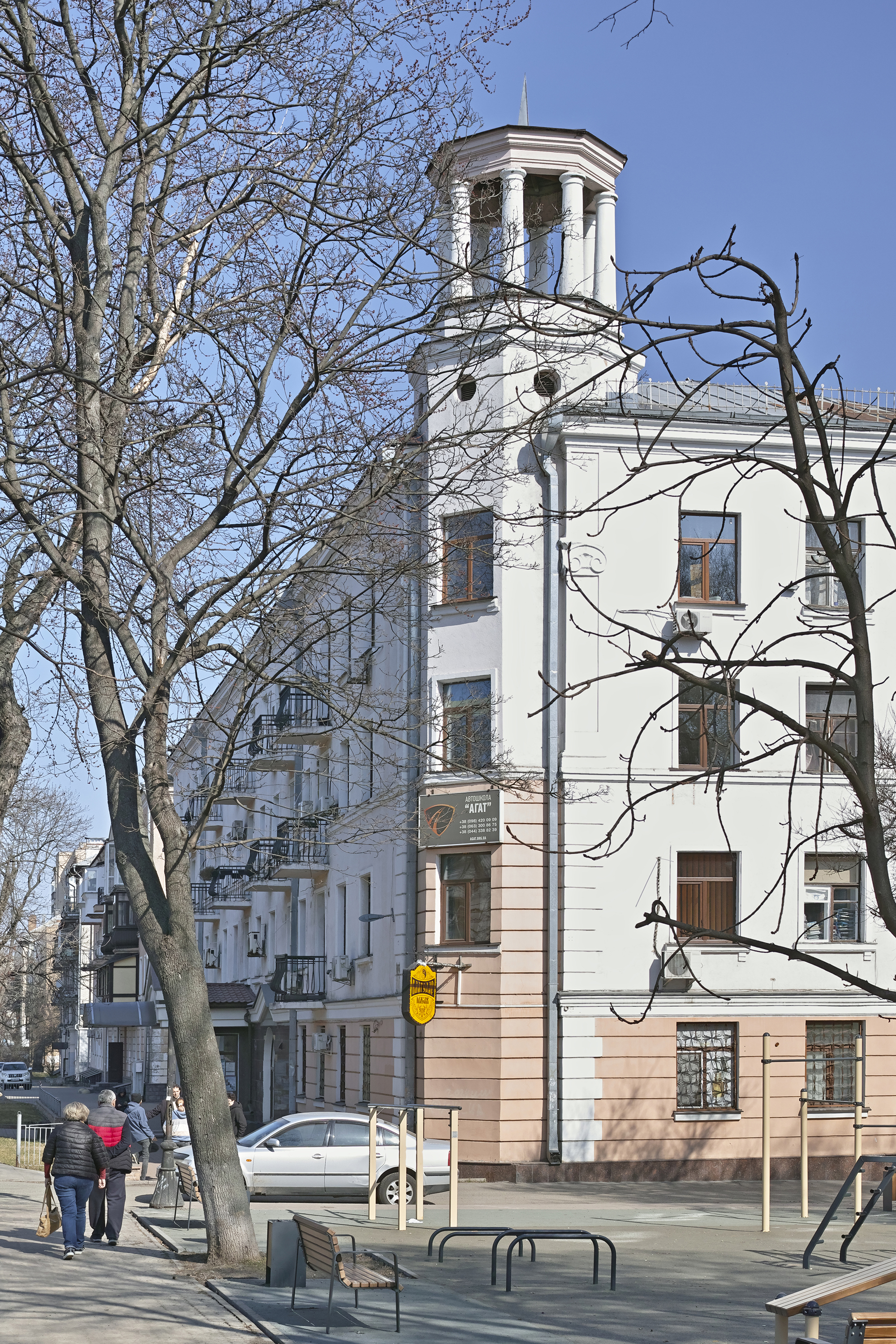 Будинок під номером 12 — чотириповерховий житловий, а в будинку під номером 21 розмістили Комунальну аварійно-рятувальну службу. У 1930-х роках тут діяло училище для пожежників. Під час Другої світової війни у приміщенні організували заклад під назвою «їдальня для помираючих з голоду». Після війни училище відновило роботу. З північної сторони будинку прибудували Інститут туризму, створивши комплекс із різноманітними функціями.