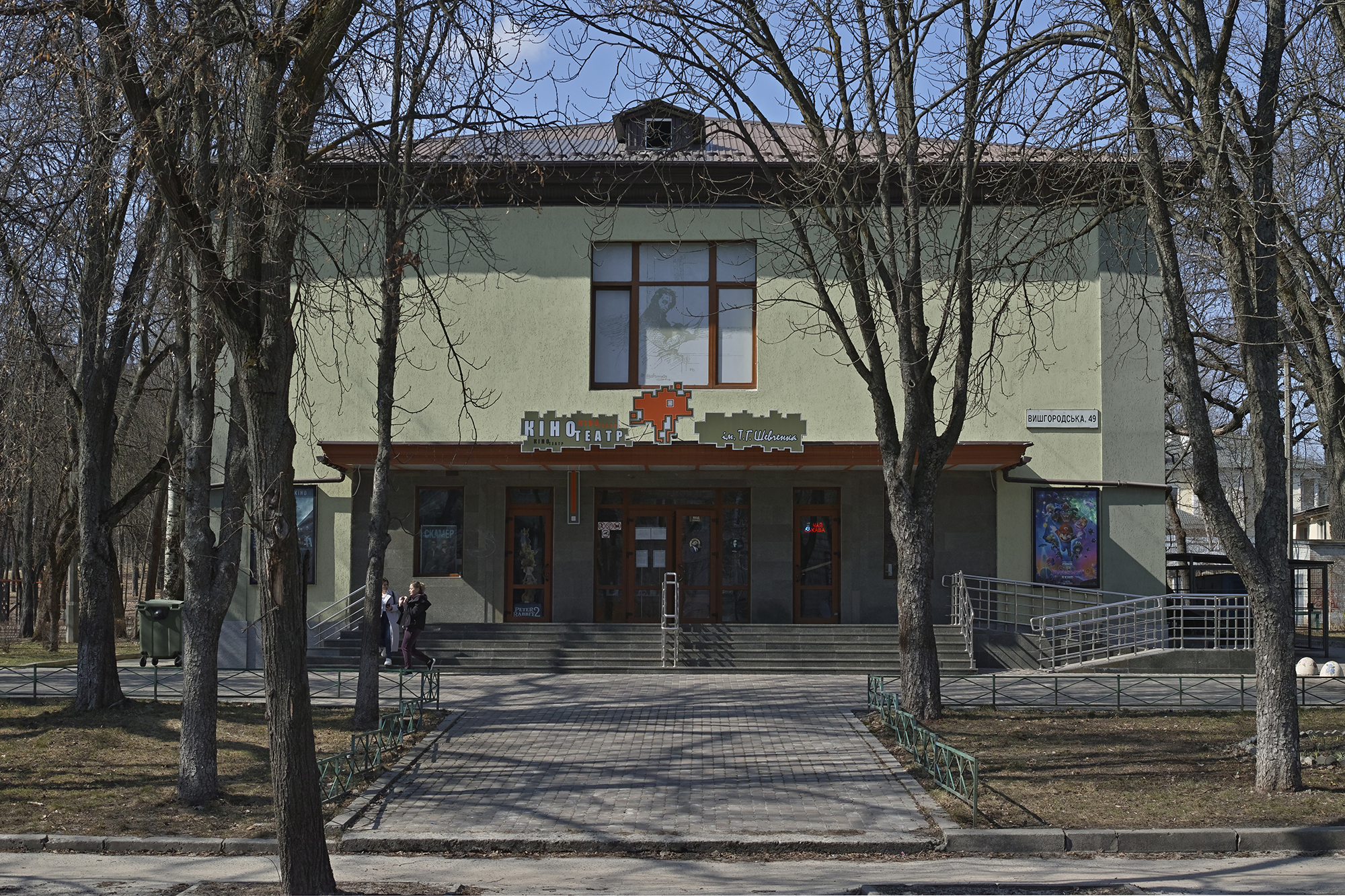 Північніше по вулиці Вишгородській на території Крістерової гірки розташований кінотеатр імені Шевченка, збудований 1962 року. Це один із небагатьох київських кінотеатрів в окремій будівлі. Глядачів тут зазвичай мало, але сеанси не скасовують: якщо є хоча би двоє, фільм покажуть. Якось я прийшла зранку, а нікого більше не було. Я купила два квитки й насолоджувалася переглядом у тиші одна.