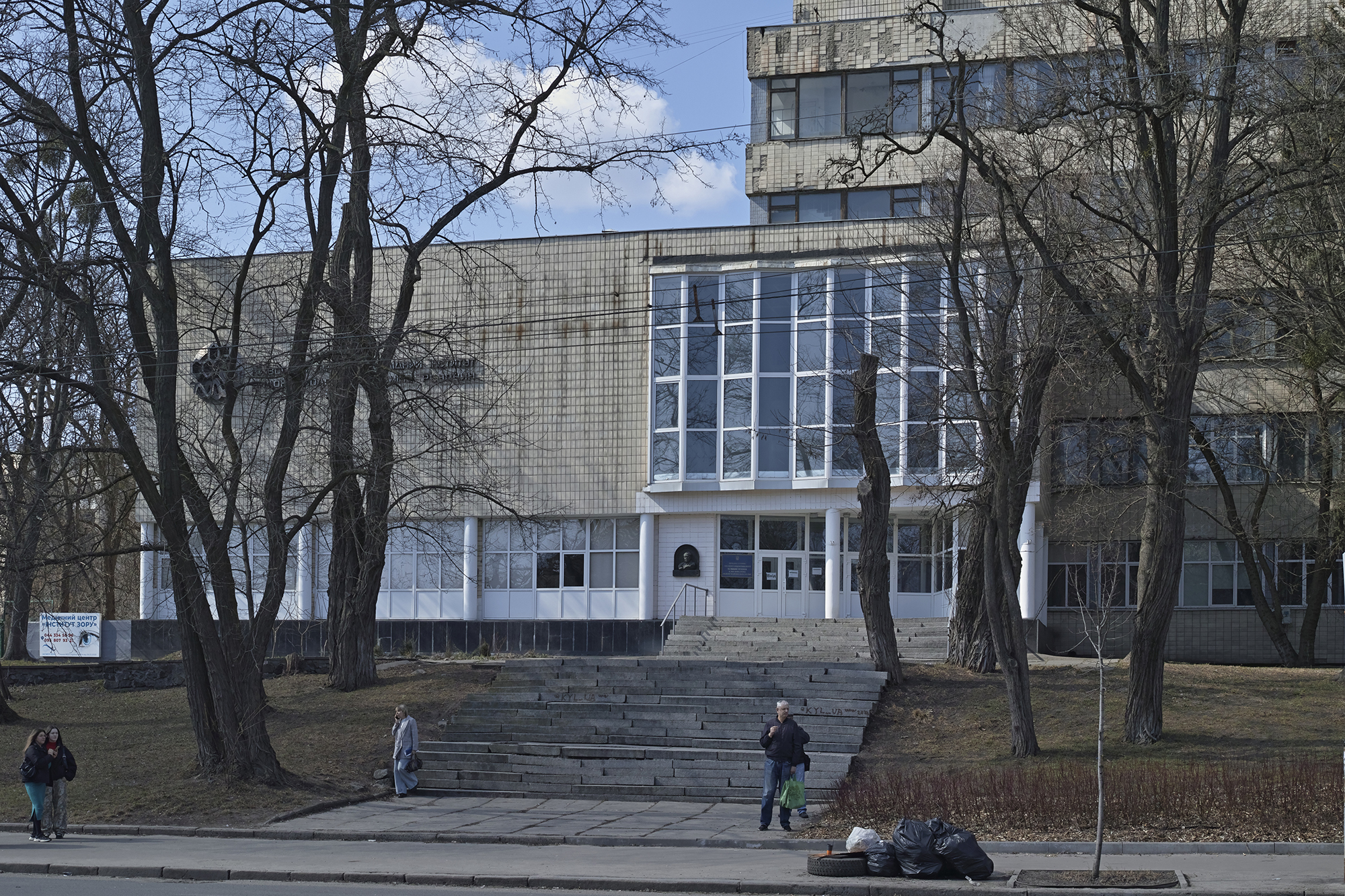 Саму будівлю інституту з чистими, як алмаз, формами, звели у 1961 році архітектори Євген Іванов, Михайло Сиркін і Валентин Єжов, котрий згодом став головним архітектором Києва. Усередині — неочікувана для такого місця річ: власний ботанічний сад і подвір’я зі ставком.