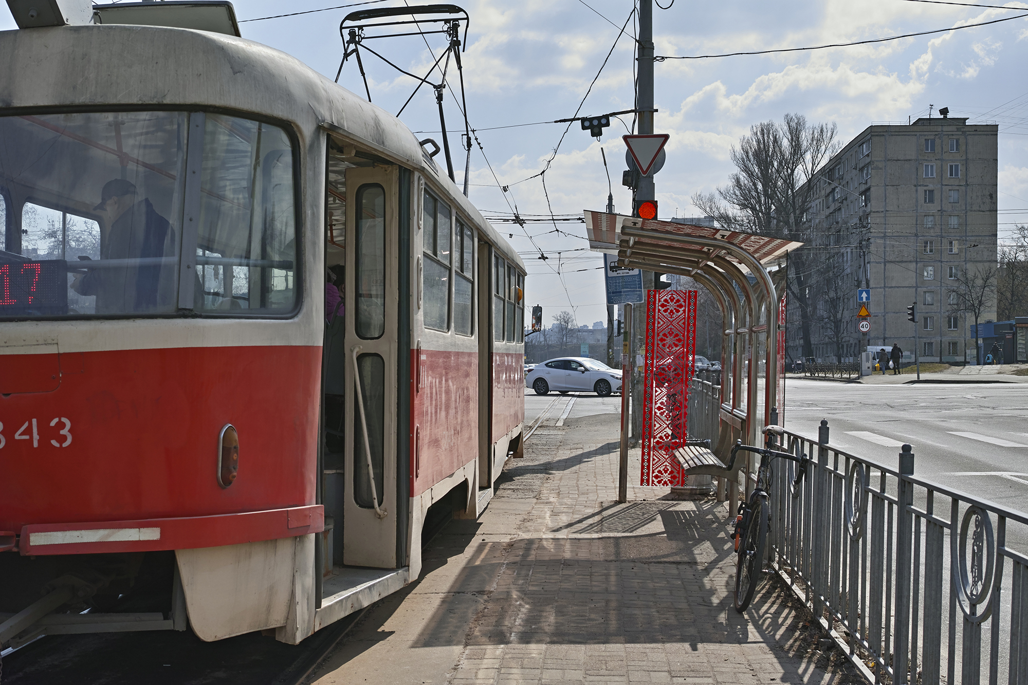 Перед тим як зайти в Пуща-Водицький ліс, трамвай проходить через площу Тараса Шевченка — північну межу Пріорки.