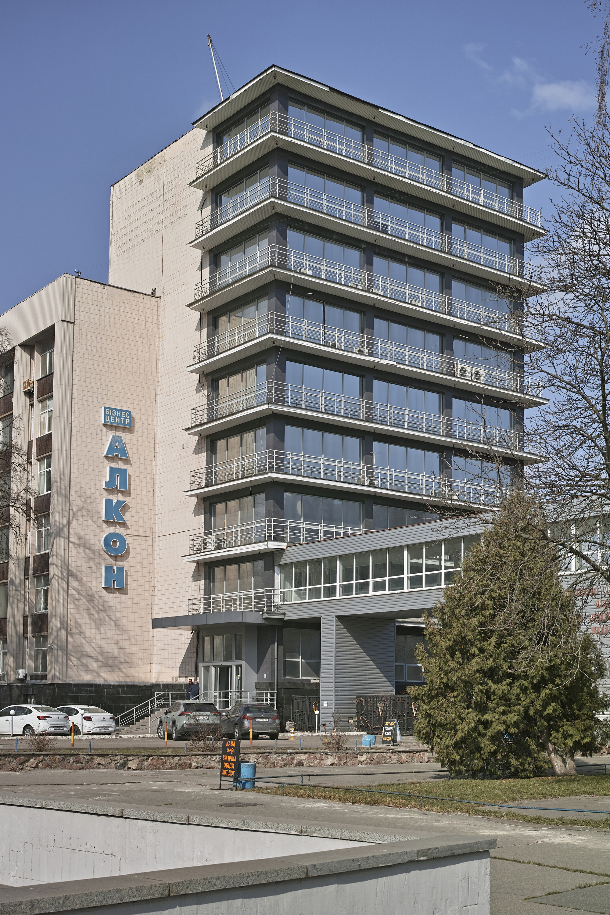 На перетині Автозаводської та вулиці Ярослава Івашкевича стоїть невелика будівля, зашита в синьо-сірі панелі вентфасаду. Усередині — типовий набір орендарів: АТБ, «Укрпошта», меблевий магазин, за якими вже не впізнати колишнє кафе «Рівне».